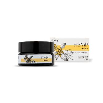 Húðsalvinn, ríkulega hlaðinn af lífrænu, vegan og dýravænu ræktuðu og unnu CBD (Cannabidiol) og E vítamíni, hentar best þegar borið er á afmörkuð svæði, s.s. staka þurrkubletti á hælum, hnjám og olnbogum eða á viðkvæma húð, t.d. á andlit, háls og bringu. Í honum eru einungis náttúruleg innihaldsefni.