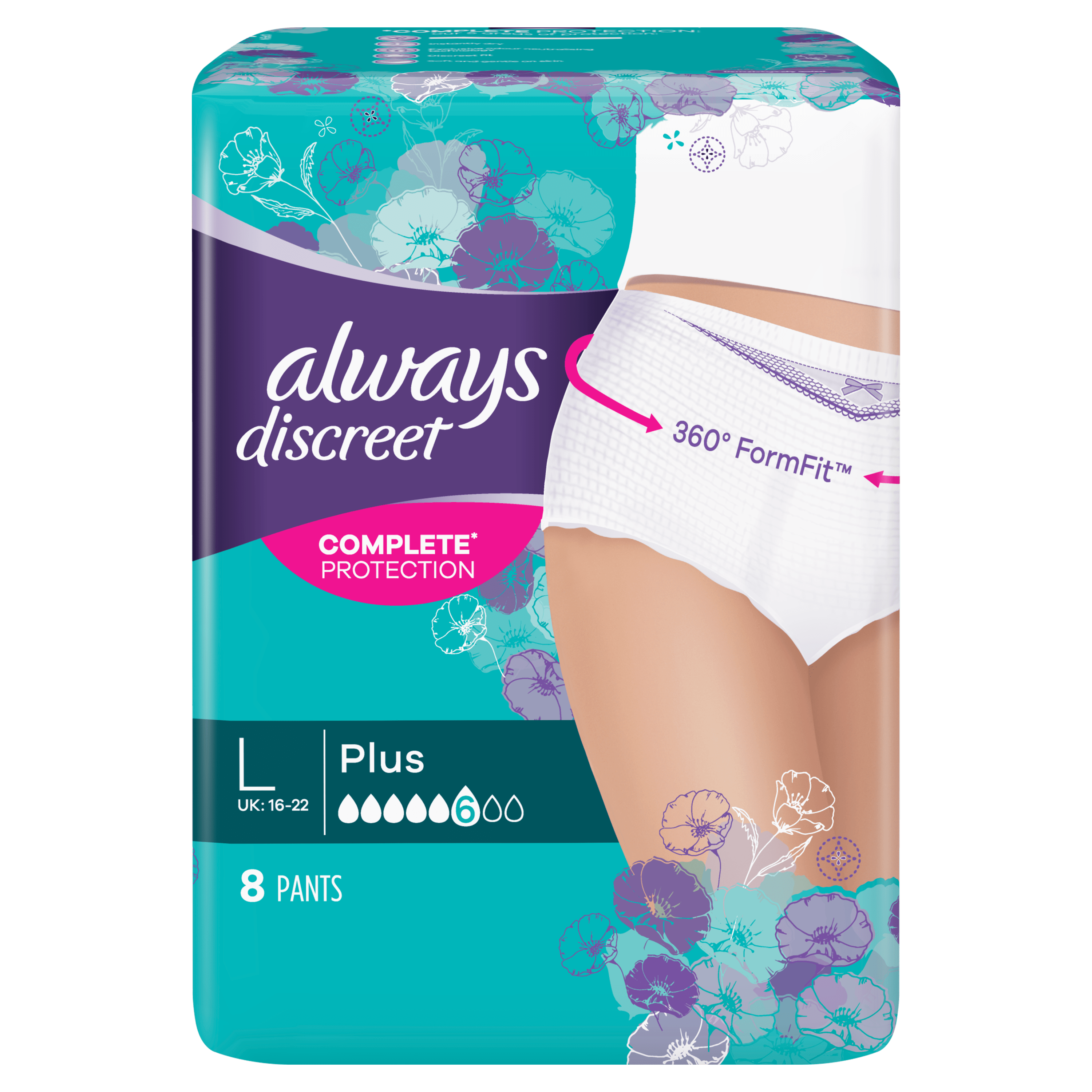 Always Discreet Large þvaglekanærbuxur, rakadrægar, læsa lykt, nettar og passa vel