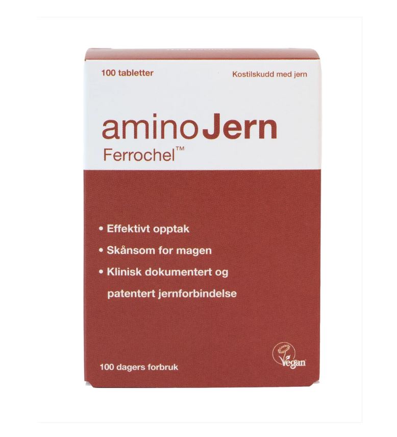 AminoJern 25 mg byggir upp járnforða líkamans á skilvirkan hátt en aminoJern frásogast fjórum sinnum betur en hefðbundin járbætiefni. Allajafna veldur aminoJern ekki erfiðum aukaverkunum líkt og ógleði eða meltingarfæratruflunum. Hægt er að taka aminoJern inn með mat en ólíkt öðrum járnfæðubótarefnum truflar inntaka matar ekki frásogið og helst það gott. aminoJern inniheldur hvorki glúten, sykur né neinar dýraafurðir og geta því allir notast við það.