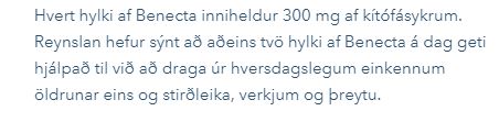 Með því að vinna úr bólgum getur Benecta™ minnkað óþægindi og aukið úthald og orku.