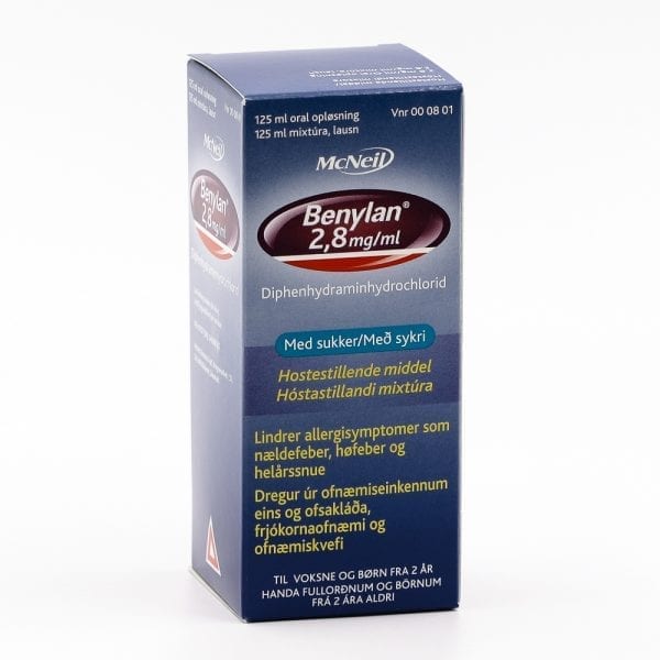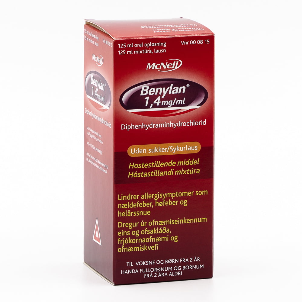 Benylan inniheldur efni (andhistamín) sem virkar hóstastillandi og dregur úr ofnæmiseinkennum. Þú getur notað Benylan til meðferðar á Þurrum hósta Ofnæmi, einkum ofsakláða, frjókornaofnæmi og ofnæmiskvefi. Hámarksverkun næst 2 – 2½ klst. eftir inntöku og verkunin varir í u.þ.b. 4 – 8 klst.