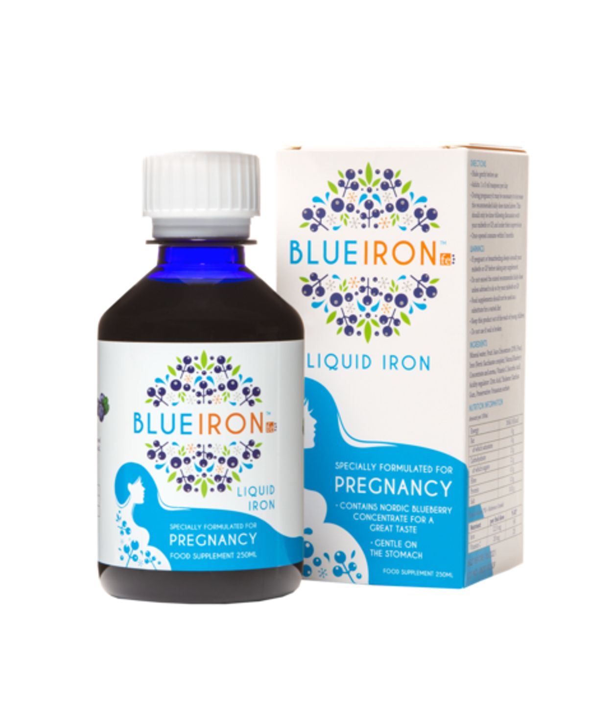 | Járn í fljótandi formi. Formúlan er sérhönnuð fyrir barnshafandi og mjólkandi mæður. Járnmixtúran er bragðbætt með bláberjum. Blue Iron Pregnancy er sérstaklega samsett fyrir barnshafandi konur með viðeigandi skammti af járni og C-vítamíni til að auka nýtingu og frásog járns. Járn er manneskjunni nauðsynlegt á flestum aldursskeiðum lífsins, sérstaklega barnshafandi konum og mæðrum með barn á brjósti. Járn dregur úr þreytu og slappleika og hefur mikilvægu hlutverki að gegna við frumuskiptingar. Blue Iron er einkaleyfa varið, ör-hjúpað form af járni og er milt fyrir magann. Blue Iron inniheldur engin litarefni og hentar fyrir grænkera (Vegan). |