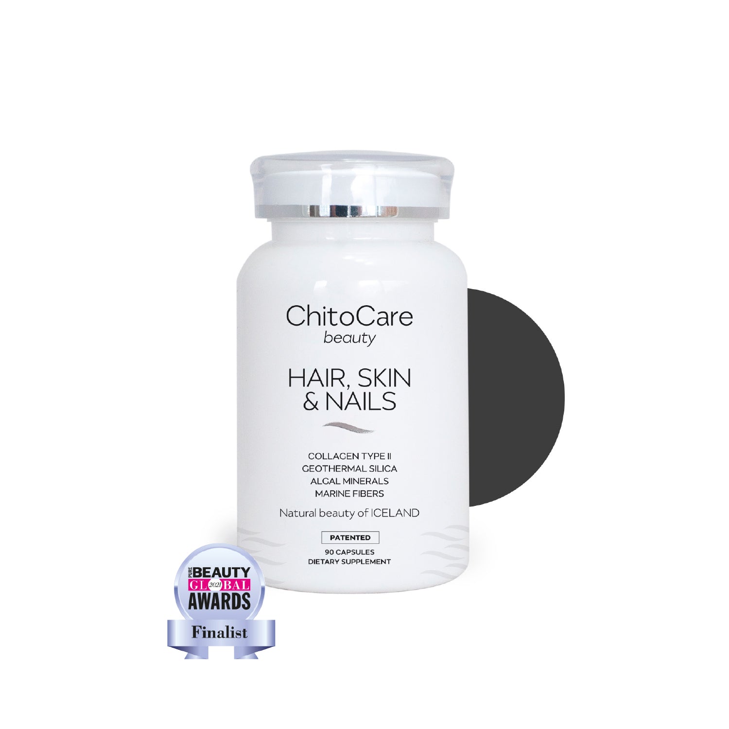 ChitoCare beauty Hair Skin & Nails er byltingarkennd lífvirk formúla, auðug af náttúrulegum næringarefnum sem gegna mikilvægu hlutverki til að viðhalda heilbrigðum hárs, húðar og nagla. Kollagen týpa II complex inniheldur mikilvæg byggingarefni sem veita raka og skipta sköpum fyrir endurnýjun húðarinnar. Íslenskur kísill styrkir húð, hár og neglur, en steinefnaríkir kalkþörungar og einstakar trefjar úr hafinu við Íslandsstrendur fullkomna þessa einstöku formúlu. Viðbætt C-vítamín, sink og selen hafa andoxandi eiginleika og stuðla að því að verja frumur fyrir oxunarálagi. Einnig stuðlar C-vítamin að eðlilegri starfsemi ónæmiskerfisins.
