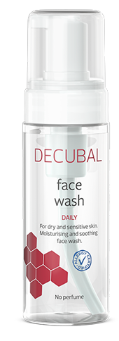 Mild hreinsifroða, sem hreinsar húðina á áhrifaríkan hátt án þess að þurrka hana. Froðan hefur létta og mjúka áferð. Hún inniheldur líka rakagefandi glýserín, sem verndar húðina og allantóín, sem hreinsar mjúklega burt dauðar húðflögur og hvetur frumuendurnýjun í húðinni. Decubal face wash inniheldur einnig sefandi kamillu sem hindrar ertingu.