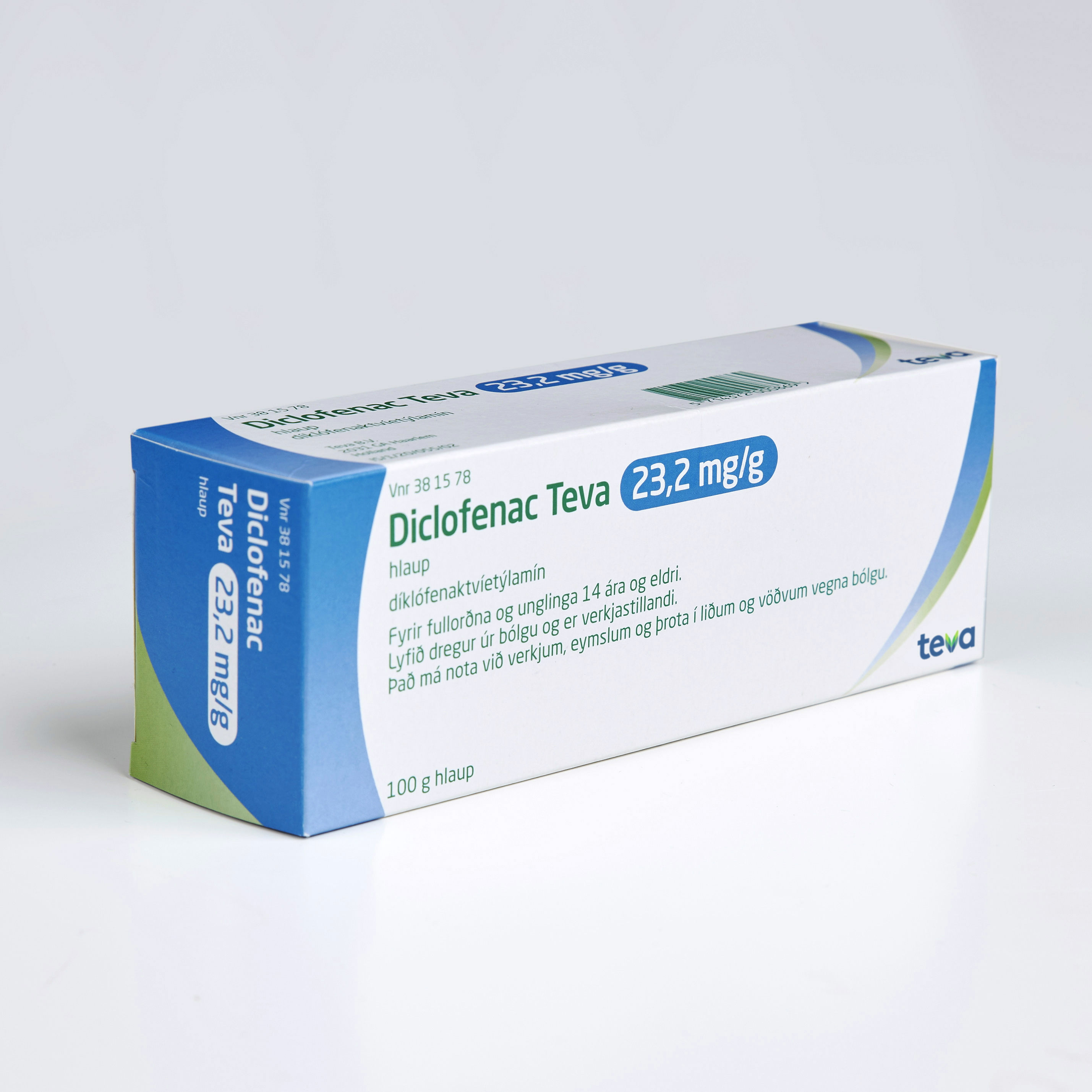 Diclofenac Teva er notað útvortis við verkjum, eymslum og þrota í liðum og vöðvum vegna bólgu. Kynnið ykkur notkunarleiðbeiningar, varnaðarorð og frábendingar áður en lyfið er notað. Lesið vandlega upplýsingar á umbúðum og fylgiseðli fyrir notkun lyfsins. Leitið til læknis eða lyfjafræðings sé þörf á frekari upplýsingum um áhættu og aukaverkanir. Sjá nánari upplýsingar um lyfið á www.serlyfjaskra.is Markaðsleyfishafi Teva B.V. Umboðsaðili er Teva Pharma Iceland ehf