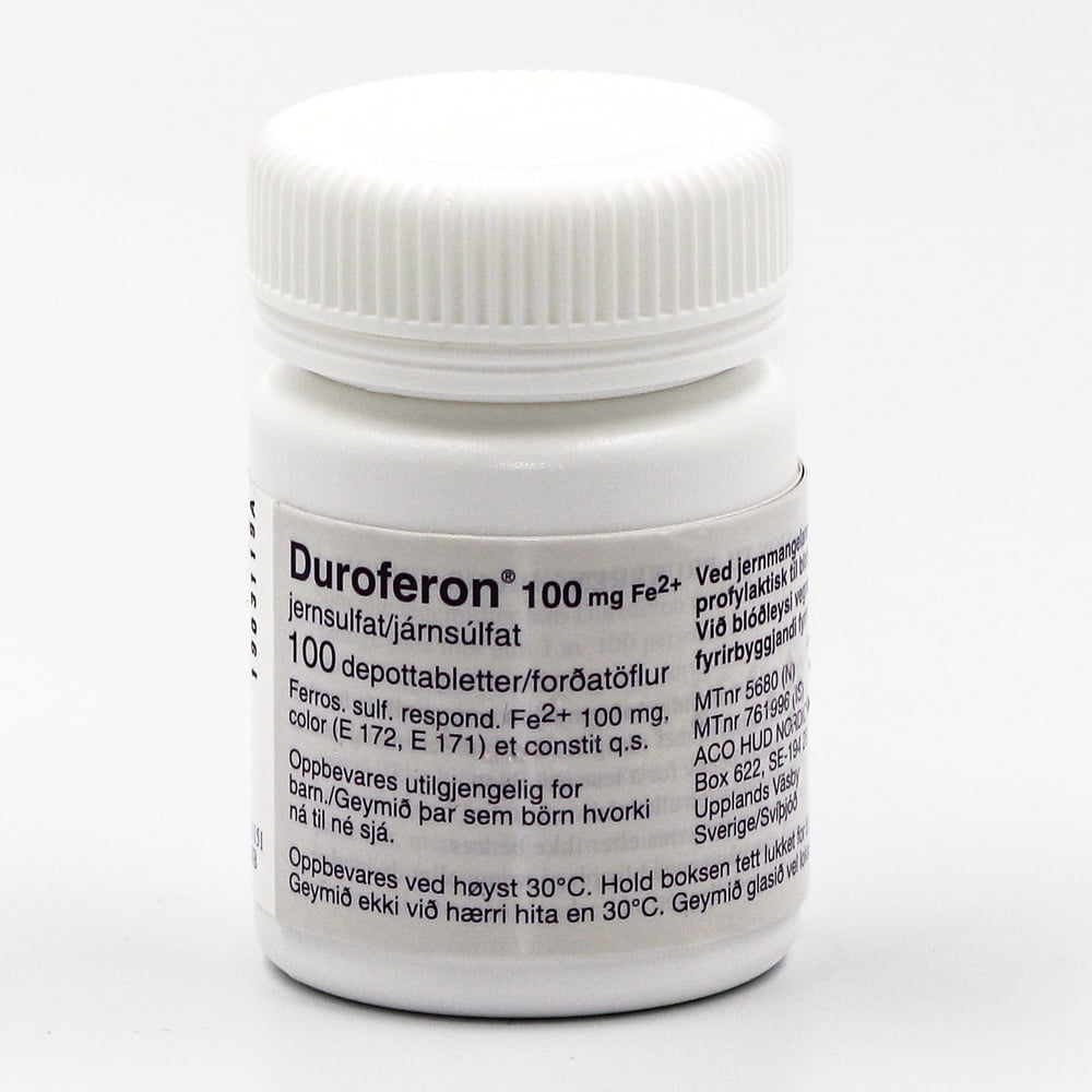 Duroferon inniheldur járn. Duroferon er fyrirbyggjandi gegn járnskorti. Duroferon er notað við járnskorti, blóðleysi vegna járnskorts og til að koma í veg fyrir blóðleysi hjá blóðgjöfum. Taflan losar járnið smám saman sem tryggir að járnið berst í blóðið með jöfnum hraða á löngum tíma. Þannig nýtist járnið betur og jafnframt minnkar hættan á aukaverkunum eins og ógleði og magaverk samanborið við venjulegar járntöflur.