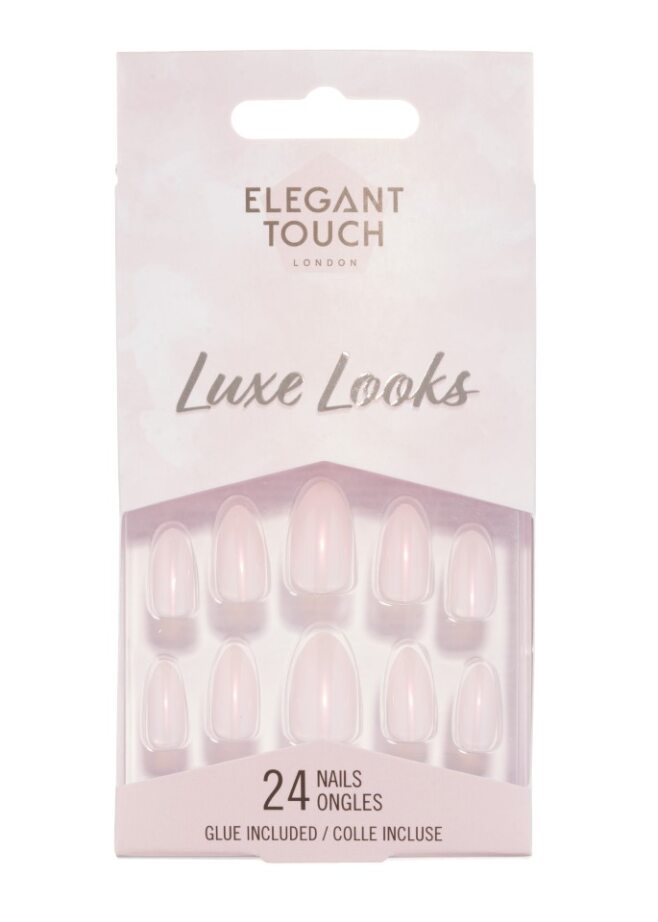 Elegant Touch er stærsta gervinagla vörumerki Bretlands og gervineglurnar eru í hæsta gæðaflokki. Neglurnar eru þunnar svo þær virka ekki gervilegar og laga sig að náttúrulegu nöglinni. Neglurnar koma í mismunandi lagi og litum svo hver og einn ætti að geta fundið sínar fullkomnu neglur. Sugar Glaze frá Elegant Touch eru fallegar fölbleikar neglur með örfínu glimmeri sem gefur fallega króm áferð.