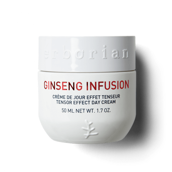 GINSENG INFUSION býr yfir kröftum hefðbundinna kóreskra jurta sem hafa verið notaðar til að draga úr hrukkum. Einstök virkni sem gefur húðinni aukinn stinnleika og útgeislun á hverjum degi. Ummerki öldrunar virðast einfaldlega dvína. Húðin verður unglegri, fyllri og litarhaftið endurheimtir ljómann sinn. Prófað undir eftirliti húðlækna. landa af hvítu gingsengi: Býr yfir andoxunarefnum, sefar, sléttir úr hrukkum, kemur í veg fyrir ummerki öldrunar, nærir, styrkir varnir húðarinnar og verndar húðina *Ginseng rótarseyði (e. Panax ginseng) *Lakkrísrótarseyði (e. Licorice root extract) *Vilt Yamrótarseyði (e. Wild Yam root extract) *Kigelia ávaxtaseyði (e. Kigelia africana extract) *Klóeftingsseyði (e. Horsetail extract) *Engiferrótarseyði Kornolía: Býr yfir samsetningu sem styrkir varnir húðarinnar. Sesamolía: Þekkt fyrir verndandi eiginleika, býr yfir náttúrulegum andoxunarefnum, nærir og mýkir húðina. Sæt möndluolía: Mýkjandi, nærandi og styrkir varnir húðarinnar. Shea smjör: Mýkjandi og nærandi eiginleikar Hunangsseyði: Nærir húðina