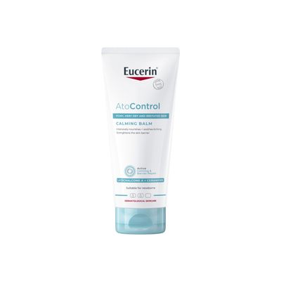 Ofnæmis eksem smyrslið veitir tafarlausan raka til að gera húðina mjúka og slétta og með reglulegri notkun batnar ástand húðarinnar áberandi. Ilmlausa smyrslið hefur létta, skemmtilega áferð sem frásogast fljótt og er ekki feitt og klístrað. Eucerin AtoControl Calming Balm er húðfræðilega prófað fyrir þurra, ofnæmishúð. Það er óhætt að nota frá fyrsta degi fyrir viðkvæma húð nýbura og barna, bleyjusvæði aðeins frá 1. Mánuði Vegna viðkvæmrar en áhrifaríkrar formúlu er það einnig tilvalið fyrir börn og fullorðna, þess vegna smyrsl fyrir alla fjölskylduna sem varðveitir húðhindrunina og róar virkan kláða í húð.
