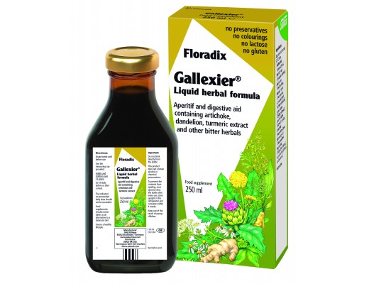Gallexier hjálpar til við að auka flæði meltingarsafa frá briskirtli og lifur og heldur þörmunum heilbrigðum. Jurtirnar hjálpa lifrinni að hreinsa sig og brjóta niður feitan og þungan mat. Einnig hafa vísindalegar rannsóknir staðfest að beiskar jurtir létta þeim lífið sem þjást af þindarsliti. Uppistaðan í Gallexier eru beisku jurtirnar þistilhjarta (Artichoke), sem kemur í veg fyrir harðlífi og hin fræga systurjurt hennar, Mjólkurþistill sem verndar lifrina og blæs nýju lífi í lifrarfrumurnar. Gallexier inniheldur einnig 10 aðrar beiskar jurtir.