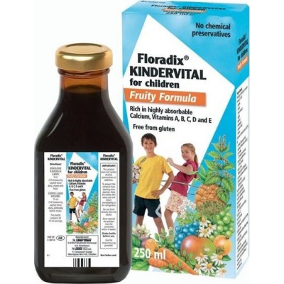 Floradix fruity formúla, fjölvítamínblanda í fljótandi formi sem er sérsniðin fyrir hressa krakka sem eru að vaxa. Floradix fruity er með ávaxtabragði og án allra aukaefna. Hentar grænmetisætum. Án glútens, laktósa og gers.