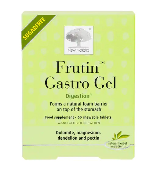 Frutin eru sérvaldar tuggutöflur sem innihalda náttúrulegar trefjar úr appelsínum og mynda náttúrulega róandi froðu yfir efsta hluta magans sem hindrar að magasýrurnar flæði upp í vélindað. Frutin inniheldur kalsíum sem stuðlar að eðlilegri starfsemi meltingarensíma ásamt pektín, níasín og magnesíum sem stuðlar að eðlilegum orkugæfum efnaskiptum.
