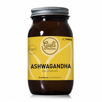 Ashwagandha Gula miðans er 100% lífræn, möluð rót án allra aukaefna. Mild og hrein.