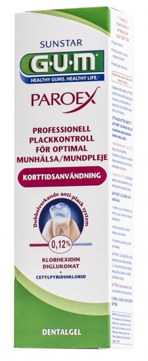 Paroex® (rauða) er meðhöndlandi lína gegn tannholdsvandamálum, sem er ætlað til notkunar í 3-4 vikur og inniheldur 0,12% af Klórhexidín.