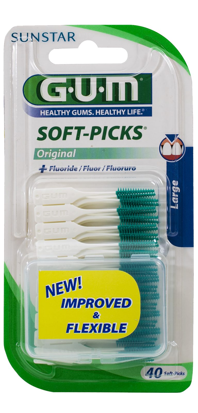 Frábærir mjúkir tannstönglar frá GUM. Hægt er að nota þá í eitt skipti, þeir nudda tannholdið, hreinsa á milli tanna og innihalda flúor til að koma í veg fyrir tannskemmdir.