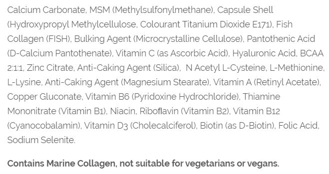 Inniheldur kollagen úr sjávarafurðum og hentar því ekki þeim sem eru Vegan.