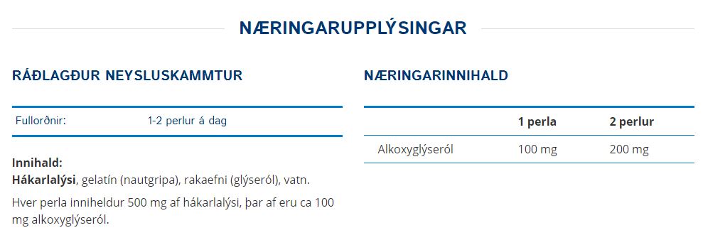 Hákarlalýsi inniheldur ekki A- og D- vítamín og því geta þeir sem taka lýsi notað hákarlalýsi á sama tíma.