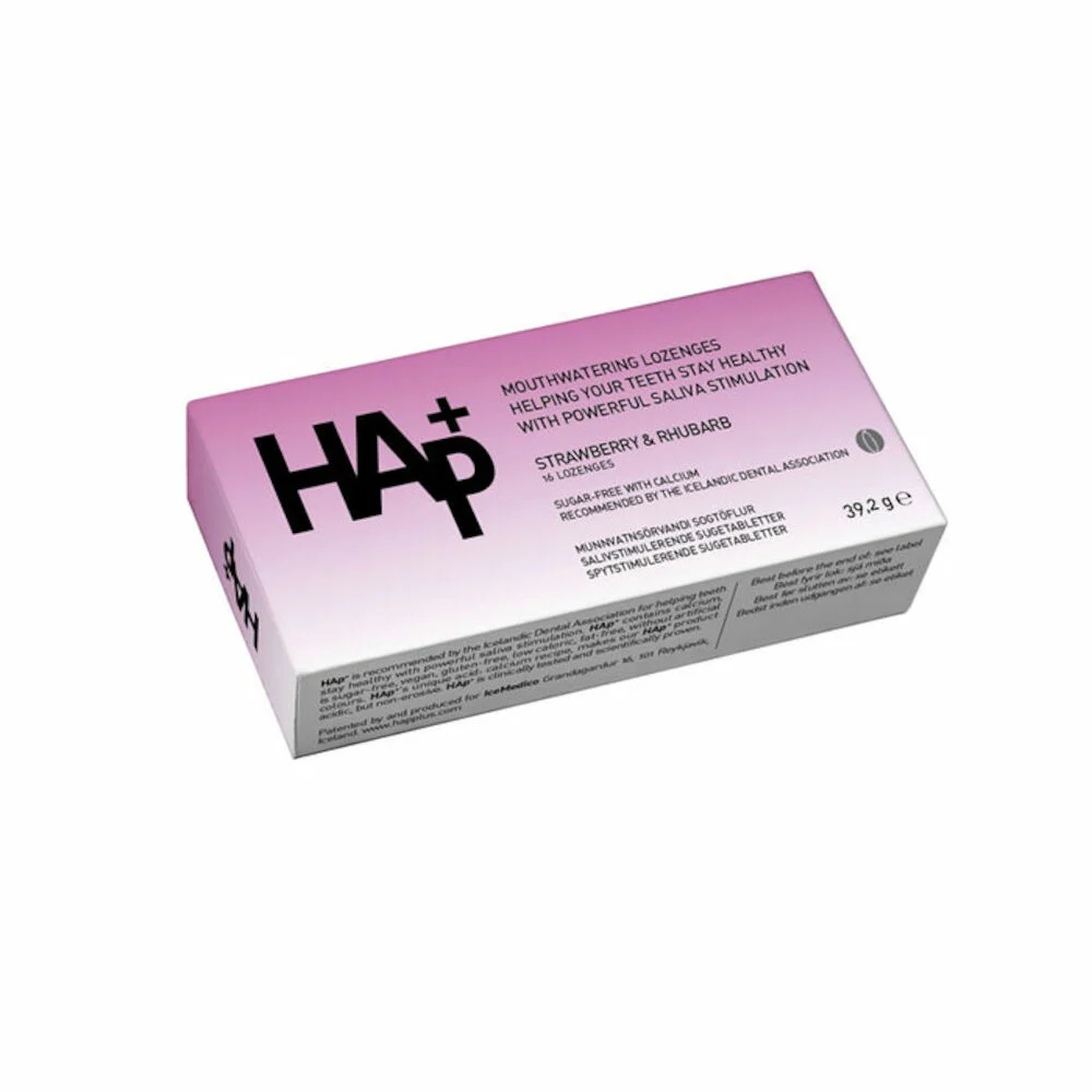 • HAp+ er klínískt prófað og vísindalega sannað að viðhalda heilbrigði tanna með öflugu munnvatnsflæði