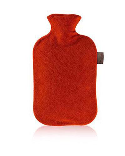 Hitapoki klæddur flís. Fyllir pokan með allt að 2 lítrum af heitu vatni og er hægt að nota til að hita upp rúmið eða til að hita upp stífa og auma vöðva. Tekur 2 lítra.