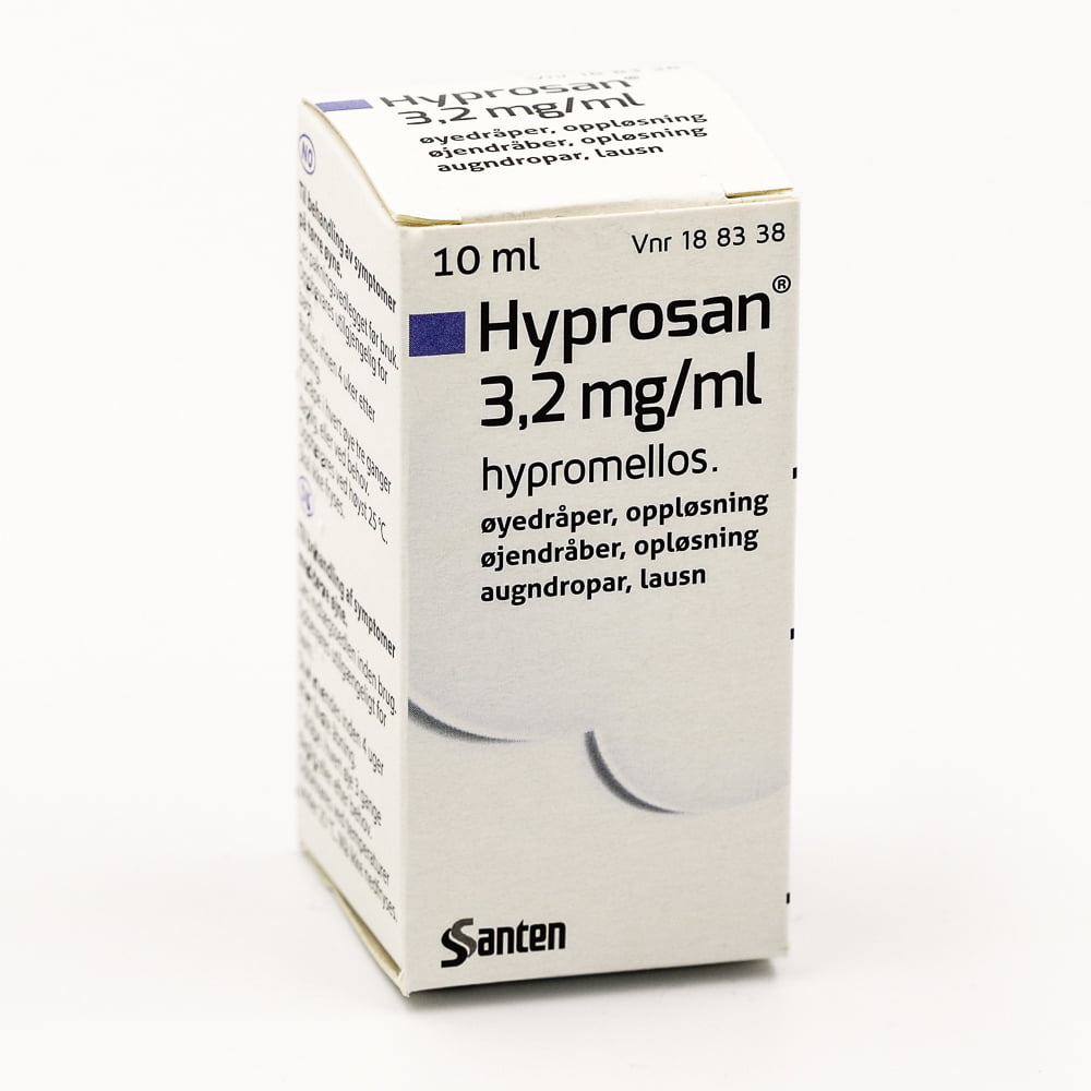 Hyprosan er lausasölulyf sem inniheldur hýprómellósa. Augndroparnir koma í stað náttúrulegra tára, sem raki og smyrja augun. Þeir eru notaðir til að meðhöndla einkenni þurrra augna. Hyprosan hefur ekki verið prófað á börnum og unglingum. Þess vegna ættu börn og unglingar yngri en 18 ára ekki að nota lyfið. Droparnir innihalda ekki rotvarnarefni og geta því verið notaðir ásamt linsum. Ráðlagður skammtur er einn dropi í hvert auga þrisvar á dag, eða eftir þörfum. Eftir að flaskan hefur verið opnuð er hægt að nota lausnina í fjórar vikur. Lestu fylgiseðilinn fyrir notkun.Frekari upplýsingar