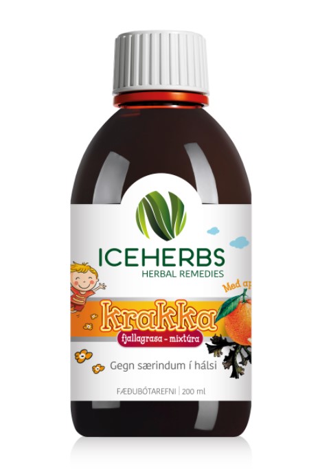 Fjallagrasa krakkamixtúra með appelsínubragði hefur mýkjandi áhrif og er góð gegn særindum í hálsi. Virkni sína sækir mixtúran í fjallagrasaþykkni með fjölsykrum sem mynda þunna himnu yfir slímhúð í hálsi og efri hluta öndunarvegar.