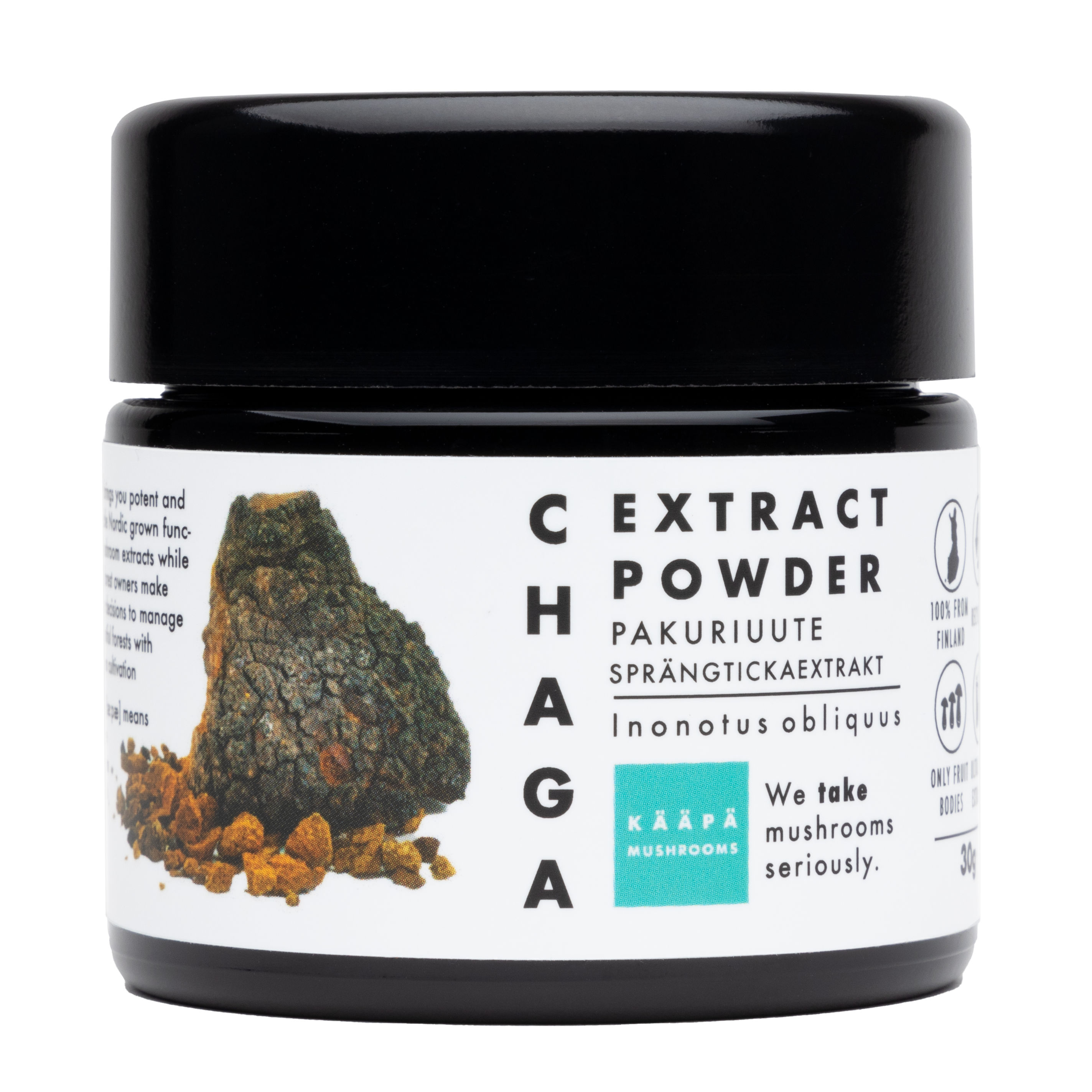Chaga sveppurinn er ræktaður í Finnlandi og hann inniheldur að lágmarki 10% beta-glúkana, duftið blandast vel í bæði heita og kalda drykki. Varan og framleiðsluferlið er gagnsætt og rekjanlegt á öllum vaxtar og vinnslustigum. Kaapa nota ultrasonic assisted útdráttartækni sem tryggir aðgengi að gagnlegum efnasamböndum sveppsins.