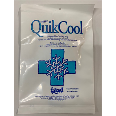 QuikCool er einnota kælipoki til þes að nota sem fyrsta hjálp strax eftir áverka. Poki sem hentar vel til að kæla líkamshluta eftir álag og áverka, svo sem mar, tognun eða bruna. Sérlega handhægur fyrir íþrótta- og útivistarfólk.