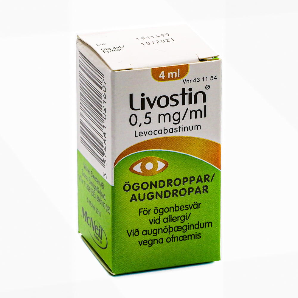 Livostin augndropar er andhistamín sem notað er við ofnæmisóþægindum eins og augnroða, þrota í augum, rennsli úr augum og augnkláða. Livostin augndropar eru notaðir við ofnæmi af völdum frjókorna eða annarra loftborinna ofnæmisvalda frá t.d. gæludýrum, ryki eða myglu/sveppagróum. Livostin vinnur gegn ofnæmi með því að hindra áhrif histamins. Það er histamin sem veldur roða, þrota, kláða og rennsli úr augum. Verkun Livostin hefst innan 15 mínútna