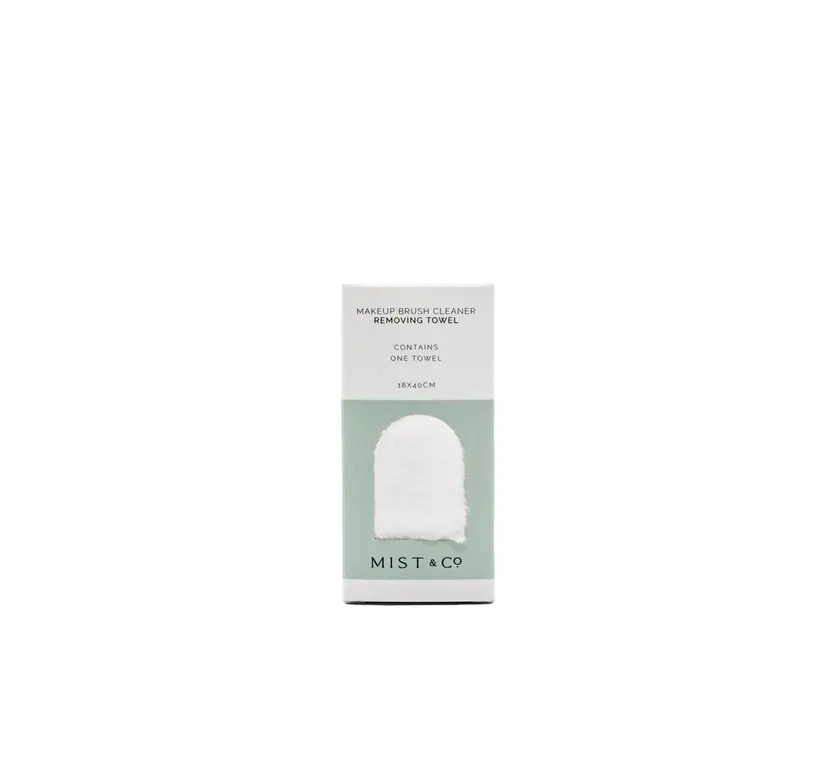Mist & Co. Makeup Removing Towel er fjölnota hreinsiklútur sem við mælum með að nota með burstahreinsinum. Spreyjaðu Mist & Co. Makeup Brush Cleaner á burstann og nuddaðu honum við hreinsiklútinn – burstinn verður eins og nýr og þornar á augnabliki.