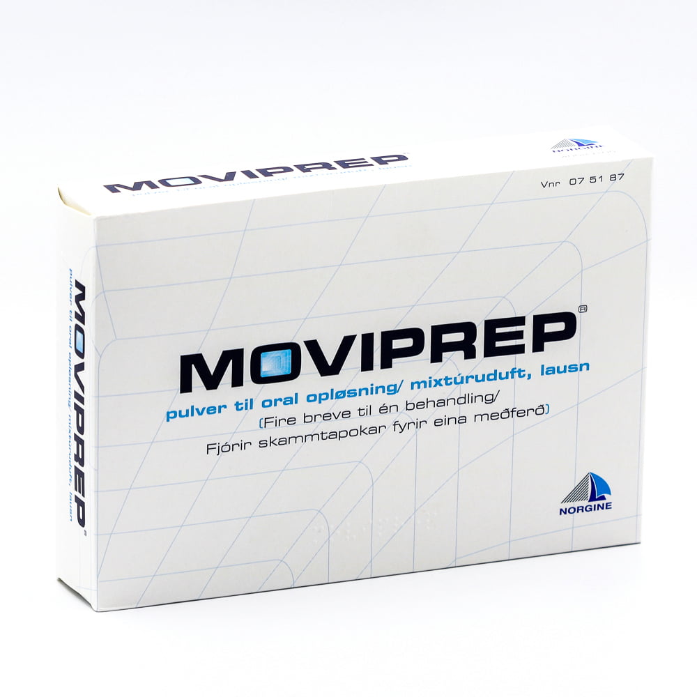 Moviprep er hægðalyf með sítrónubragði sem er pakkað í fjóra skammtapoka. Það eru tveir stærri skammtapokar (‘skammtapoki A’) og tveir minni skammtapokar (‘skammtapoki B’). Þú þarft að nota alla þessa poka fyrir eina meðferð. Moviprep er ætlað til notkunar hjá fullorðnum til að hreinsa ristilinn svo hann sé tilbúinn fyrir skoðun. Moviprep verkar þannig að það tæmir innihald ristilsins, svo þú skalt reikna með vatnskenndum hægðum.