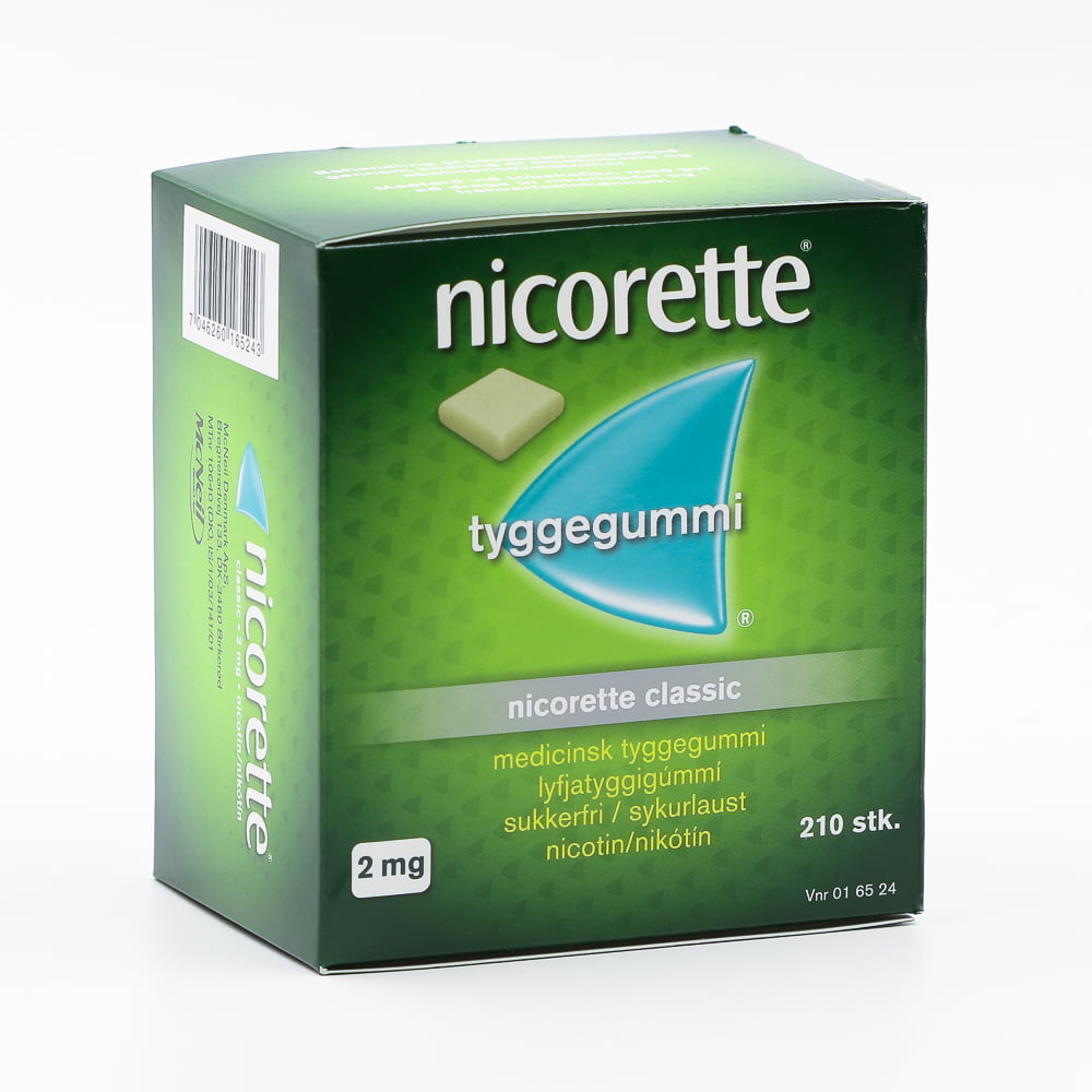 Nicorette lyfjatyggigúmmí er notað sem hjálpartæki til að hætta að reykja. Það dregur úr nikótínþörf og fráhvarfseinkennum. Úr Nicorette lyfjatyggigúmmí færðu það nikótín, sem þú venjulega færð úr tóbakinu, því nikótín losnar úr lyfjatyggigúmmíinu þegar það er tuggið. Meðferðin er ætluð þeim sem reykja, 15 ára og eldri. Þú getur notað Nicorette ef þú vilt: – hætta að reykja – tímabundið hætta að reykja – draga úr reykingunum.