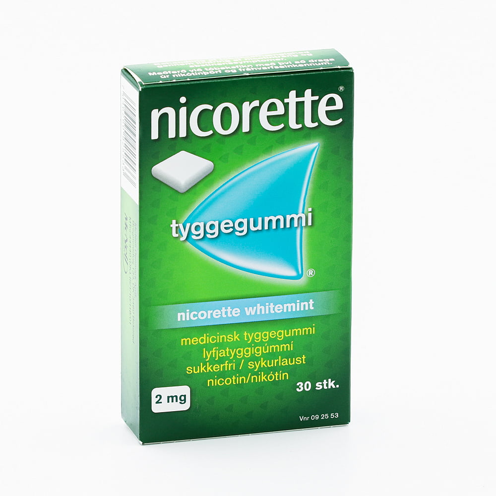 Nicorette lyfjatyggigúmmí er notað sem hjálpartæki til að hætta að reykja. Það dregur úr nikótínþörf og fráhvarfseinkennum. Úr Nicorette lyfjatyggigúmmí færðu það nikótín, sem þú venjulega færð úr tóbakinu, því nikótín losnar úr lyfjatyggigúmmíinu þegar það er tuggið. Meðferðin er ætluð þeim sem reykja, 15 ára og eldri. Þú getur notað Nicorette ef þú vilt: – hætta að reykja – tímabundið hætta að reykja – draga úr reykingunum.