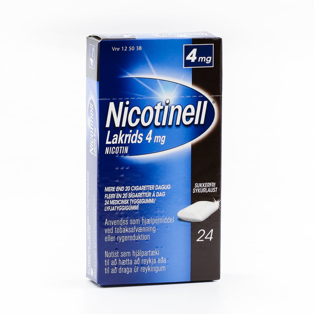 Nicotinell lyfjatyggigúmmi inniheldur nikótín, það er fáanlegt í tveimur styrkleikum 2 mg og 4 mg. Nicotinell lyfjatyggigúmmí er notað til að draga úr nikótínþörf og fráhvarfseinkennum nikótíns hjá einstaklingum sem eru háðir nikótíni. Þegar þú tyggur Nicotinell losnar nikótínið hægt og frásogast í gegnum slímhúðina í munninum. Þannig getur það auðveldað reykingafólki sem vill hætta að reykja eða að draga úr reykingum.