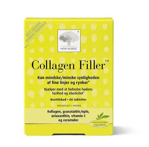 Skin Care Collagen Filler er unnið úr sérstakri blöndu af jurtaefnum úr granateplum og þykkni úr karótíninu astaxanthin. C vítamín leggur sitt af mörkum í að viðhalda eðlilegri kollagen framleiðslu húðfrumanna og hefur andoxunaráhrif sem minnkar m.a. líkur á oxandi áhrifum af völdum geisla sólar.