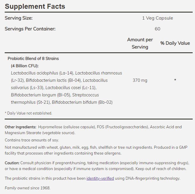 8 mismunandi tegundir og 4 milljarðar meltingagerla. Regluleg inntaka meltingagerla styður við heilbrigða þarmaflóru og heilbrigð þarmaflóra hjálpar við upptöku á næringarefnum og styður heilbrigt ónæmiskerfi