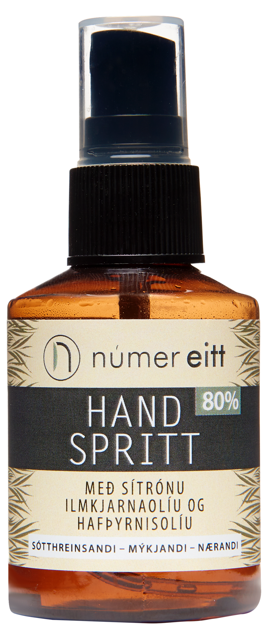 Númer eitt er handspritt með 100% hreinni sítrónu ilmkjarnaolíu ásamt hafþyrnisolíu sem gefur mýkt og kemur í veg fyrir þurrar hendur.