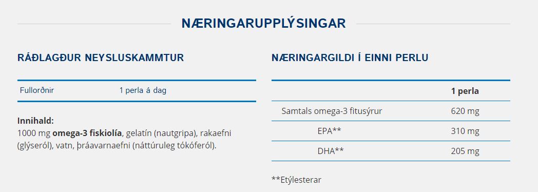 Ráðlagður dagsskammtur fyrir fullorðnir, ein perla á dag