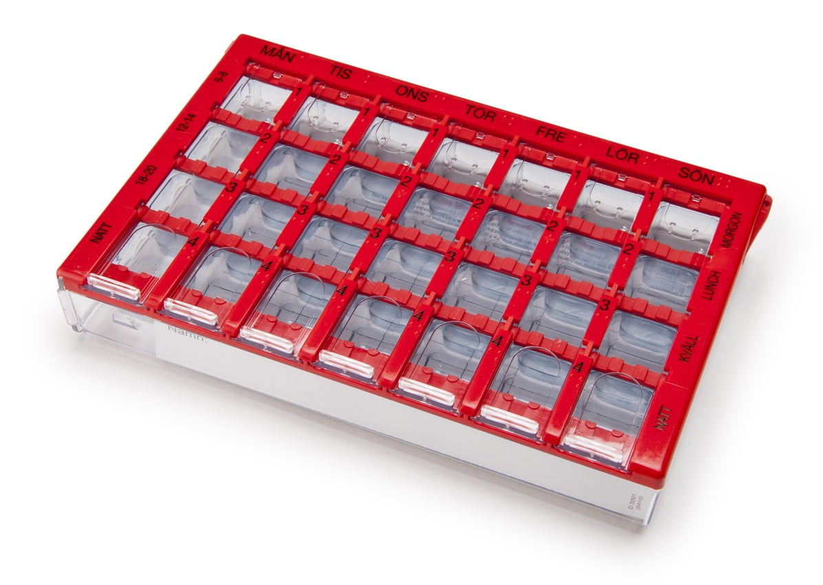 Tvöfalt meira pláss fyrir töflurnar en í venjulegum skammtakassa.