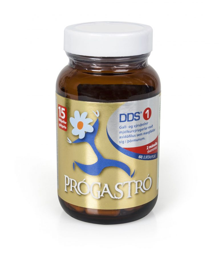 Prógastró gull mjólkursýrugerlar bæta þarmaflóruna og eru góðir gegn meltingarvandamálum, ónotum, uppþembu, erfiðum hægðum, sveppasýkingum, húðvandamálum og andlegri vanlíðan.