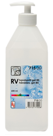 RV handspritt gel 85 % hentar vel til handsótthreinsunar og þurrkar ekki hendur.
