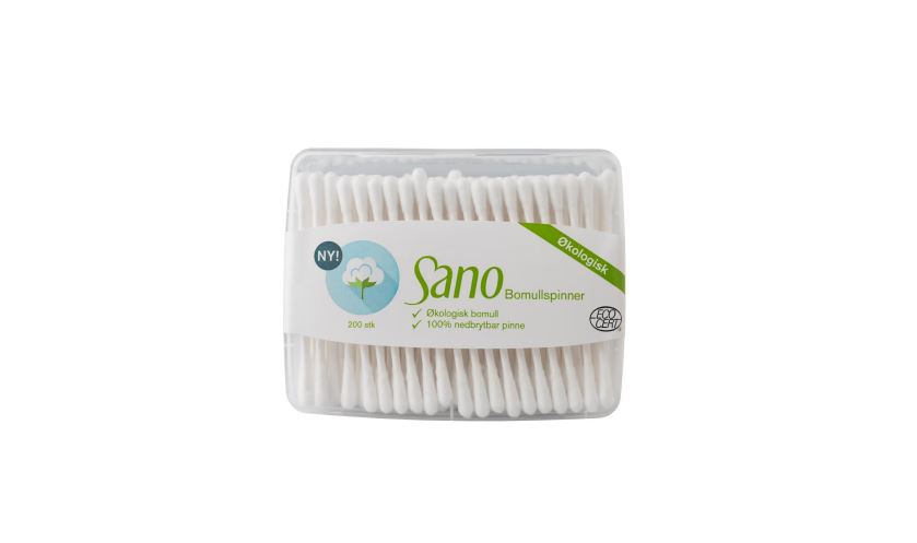 Bómullar eyrnapinnar úr hreinni lífrænni bómull og 100% niðurbrjótanlegum pinnum.
