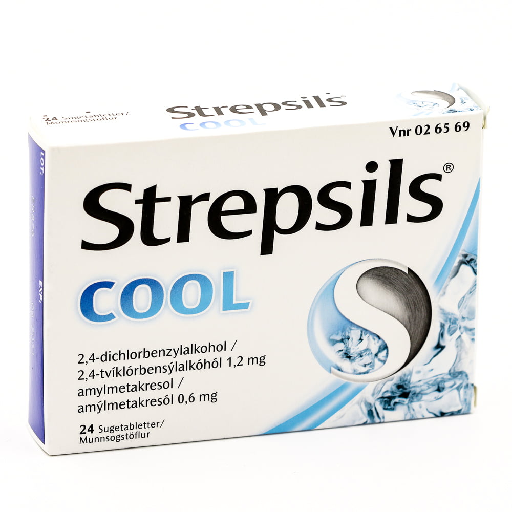 Strepsils Cool munnsogstöflur draga úr eymslum og hafa bakteríudrepandi verkun. Strepsils Cool er notað við eymslum og ertingu í hálsi hjá fullorðnum og börnum eldri en 12 ára.