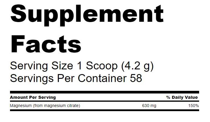 Hágæða magnesíum-sítratduft Inniheldur Sítrat, sem tryggir hámarks frásog er í duftformi, sem auðveldar að sérstilla skömmtunina