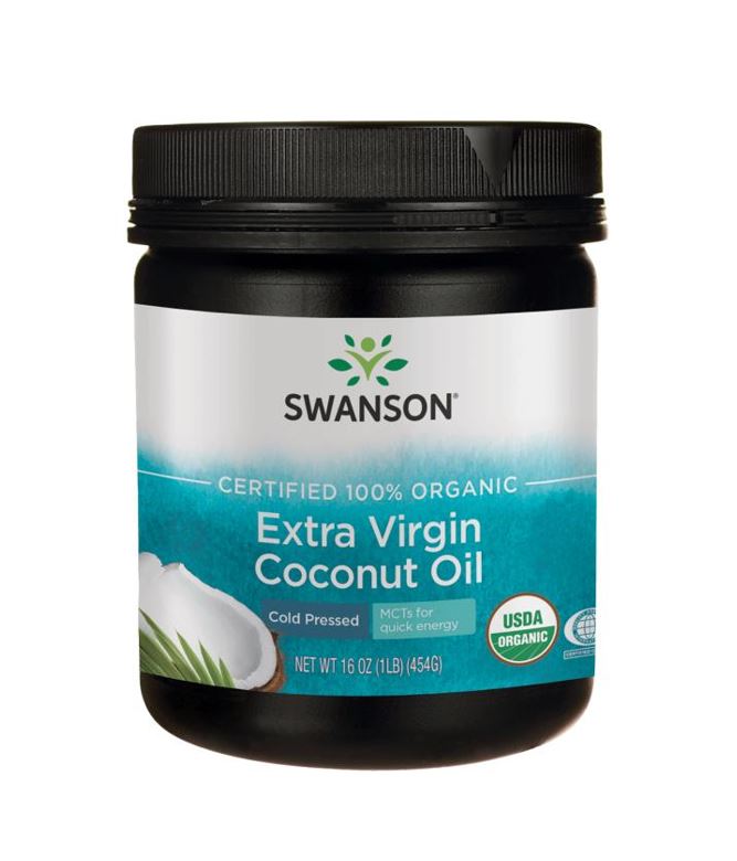 Kókos olían frá Swanson er lífræn og kaldpressuð, hentar vel í matargerð þar sem hún er mjög hitaþolin. Kókos olían er rík af Lauricsýru sem er talin hafa góð áhrif gegn bakteríum, veirum og sveppasýkingum. Kókosolíu er einnig hægt að nota á húðina í hárið og sem munnskol.