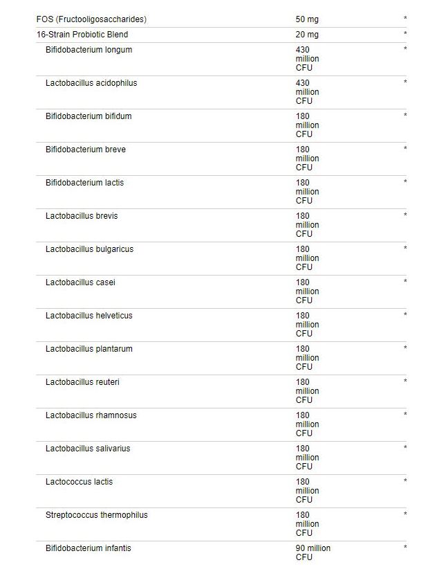 Dr. Stephen Langer’s Ultimate 16 Strain Probiotic frá Swanson inniheldur fjórum sinnum fleiri tegundir vinveittra bakería( probiotic strains) og tvisvar sinnum meiri CFUs en aðrar vinsælar vörur á markaðinum í dag. Algengt er að slíkar vörur innihaldi 2 stofna af bifidobakteríum en í þessari formúlu eru þær 5 að sama skapi er algengt að aðeins ein tegund lactobacillus en í þessari frábæru blöndu eru 10 tegundir. Lactobacillus reuteri var bætt við blönduna vegna virkni hans fyrir ónæmiskerfið og heilbrigði ristilsins. Formúlan inniheldur einnig næringu(FOS) fyrir vinveittu bakteríurnar auk ConcenTrace snefil steinefni, sem gerir þessa vöru einstaka. Þessi efni eru mikilvægt því það er algegnt að okkur skorti þau, en þessi efni eru nauðsynleg fyrir heilbrigða meltingarstarfsemi og jafnvægi þarmaflórunnar.