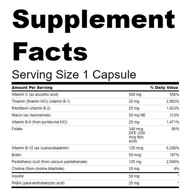 Þessi einstaka B-Vítamín blanda frá Swanson er sérstaklega hönnuð til að endurnýja næringarefnin sem við töpum gjarnan á tímum stress og álags. Hvert hylki inniheldur öfluga blöndu af B-vítamínum auk C-vítamíns sem hefur ríka andoxunar eiginleika.