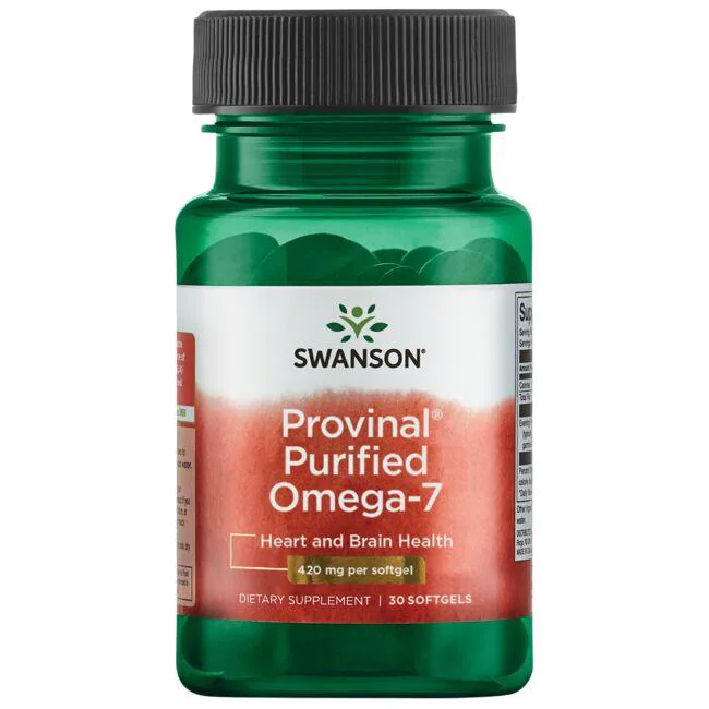 Swanson Provinal Purified Omega 7 er hágæða olía sem er talin styðja við heilbrigði hjarta- og æðakerfisins. Aðferðin sem er notuð til að einangra omega 7 eykur einnig hreinleika olíunnar og aðskilur óæskilega efni frá olíunni.
