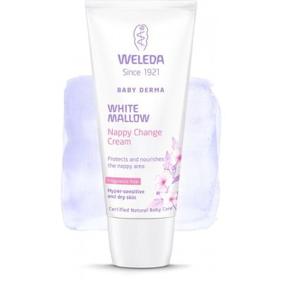 Weleda Derma Baby Care vörurnar verja viðkvæma húð barnsins frá fyrsta degi- með náttúrulegum innihaldsefnum. White Mallow Nappy Change Cream er verndandi krem fyrir bleyjusvæðið.